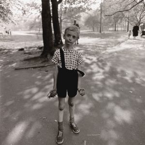 Diane Arbus, American, 1923 – 1971. Neil Selkirk, American, born England, born 1947. Child with a toy hand grenade in Central Park, NYC, 1962; printed 1973. Gelatin silver print. Image: 14 7/16 × 14 3/8 inches (36.63 × 36.53 cm). Sheet: 19 15/16 × 15 15/16 inches (50.62 × 40.46 cm). Gift of the Hall Family Foundation. 2017.24.1