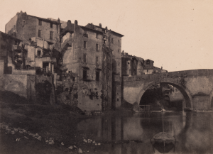 Firmin-Eugène Le Dien, French, 1817 – 1865. Gustave Le Gray, French, 1820 – 1884. Rome: Sortie du Pont Tescato au Trastevere, 1853. Salt print. Image and sheet: 9 3/8 × 12 15/16 inches (23.81 × 32.86 cm). Mount: 13 13/16 × 19 3/16 inches (35.08 × 48.74 cm). Gift of the Hall Family Foundation. 2016.75.136