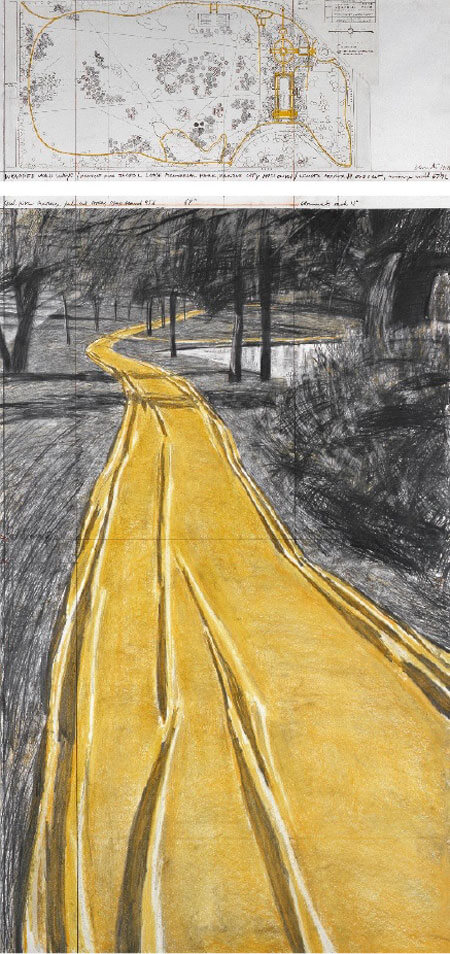 Kansas City, MO. –The Christo and Jeanne-Claude Foundation has generously given The Nelson-Atkins Museum of Art in Kansas City an exhibition consisting of original artworks and related archival material tied to the 1978 Wrapped Walk Ways project, which vividly transformed Jacob L. Loose Memorial Park. Roughly two- and-a-half miles of park pathways were wrapped in yellow nylon fabric by Bulgarian-born Christo (1935-2020) and his partner Jeanne-Claude (1935-2009), revolutionizing the way visitors viewed the park.