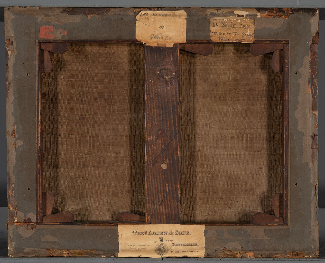 “École XIXème s[iècle] d’après J-B Greuze,” Les Sevreuses, oil on canvas, 20 7/8 x 26 3/8 in. (53 x 67 cm), reproduced in Belle Vente Mobilière: Tableaux dont Moret Henry, Guerin Ernest; Art d’Asie dont un ensemble de Tanka, Boudha Maravijaya en Bronze 14e Siècle, Porcelaine Chine; Sculpture, Objets d’Art, Mobilier XVII, XIX, XXE Siècle (La Baule, France: Salorges Enchères, August 12, 2015), no. 55, http://www.encheres-nantes-labaule.com/vente-aux-encheres/22-belle-ventes-mobiliere/11541-ecole-xixeme-s-d-apres-j-b-greuze-les-sevreuses-huile-sur-toile-53-x-67-cm.