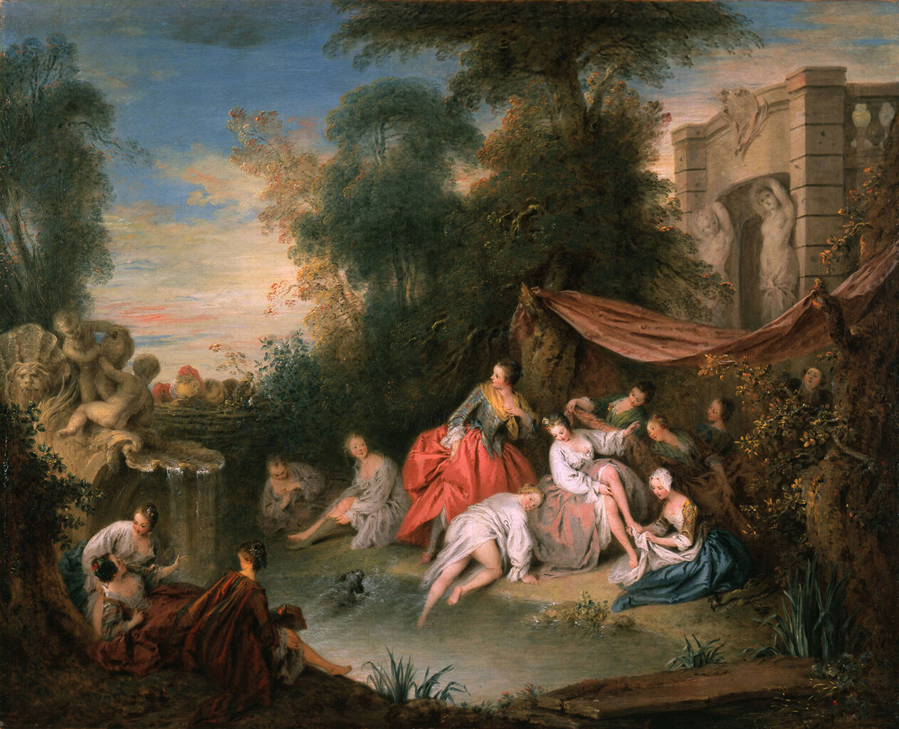 Jean-Baptiste Pater, Bathing Party in a Park, ca. 1730, oil on canvas, 25 1/4 x 33 1/2 in. (64.2 x 85 cm), The Wallace Collection, London, P426.