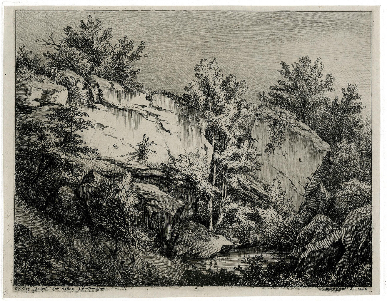 Fig. 2. Eugéne Bléry, The Rocks, Le Nid de l’Aigle, Fontainebleau, 1845, etching, 6 3/8 x 8 1/4 in. (16.2 x 20.9 cm), British Museum, London, 1856,0712.294. © The Trustees of the British Museum. Shared under a Creative Commons Attribution-NonCommercial-ShareAlike 4.0 International (CC BY-NC-SA 4.0) license.