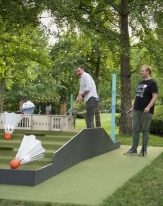 Kansas City, MO. Aug. 14, 2019–The installation of a mini-golf course in the Donald J. Hall Sculpture Park at The Nelson-Atkins Museum of Art in Kansas City has been so successful that tee times will be available through Oct. 14. Art Course was originally set to close after Labor Day.